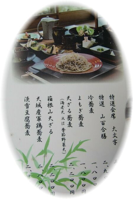 | 無相荘の庭の竹林 | 椿山荘箱根茶寮で頂いたお蕎麦の食事 |