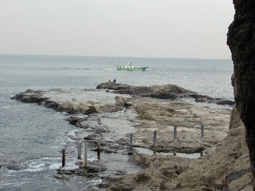 岩屋洞窟迄の途中岩場に釣り人が。