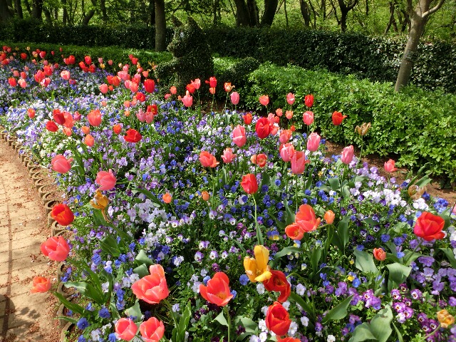 広大な敷地にはお子様用の遊戯が沢山ありお子様連れには最高。お花も沢山、ポピ-、チュウリップ、ビオラ等等 終わりかけでしたが八重桜など鑑賞しながら自然を満喫してきました。