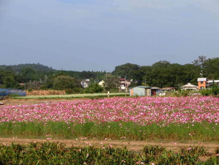 巾着田にはそんなに広くはないのですが、そばの花と今が盛りのコスモスが咲いていました。これで我慢、我慢。