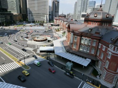 東京駅の横にあるKITTEビルから眺めた東京駅と駅前