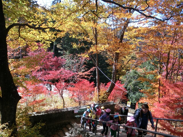 好天に恵まれた一日高尾山に紅葉を見に行って来ました。 高尾山口には大勢の登山客で溢れていました。 ケ−ブルカ−乗り場には凄い人が並んでいましたので歩いて登る事にしました。 いくつものコ−スがあったのですが、お薦めの1コ−スでしたが急な坂が続きかなりきつかった。 しかし紅葉は真っ盛り本当に綺麗でした。 薬王院にお参りし階段を登りながら山頂迄。風もなく最高の日和 帰りは5コ−スの吊橋を通り下山、急な坂で足はがくがく、やっとの思いで下に着いた。