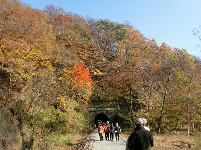 ここから9年に廃止になった信越本線を利用した遊歩道を トンネルを通り碓井第3橋梁(メガネ橋)迄ハイキング