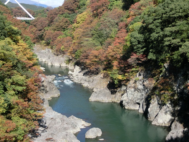 大間間橋から高津戸峡を眺める少し早いが紅葉も