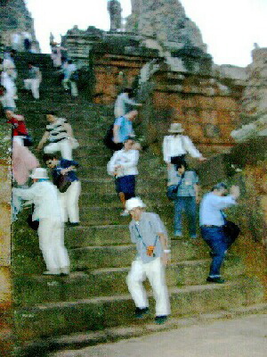 夕日鑑賞の為登ったプレル−プの急な階段(上りも、下りも怖い) |